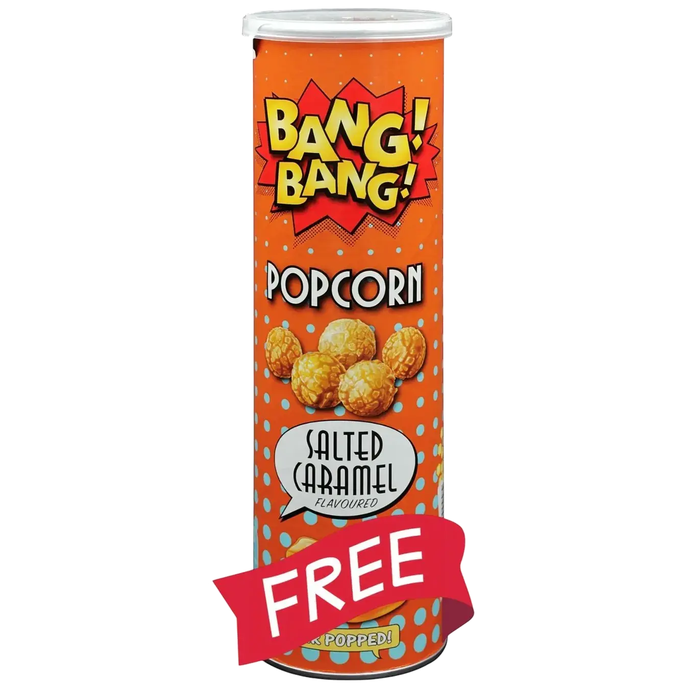 Every order comes with free Bang!Bang! Popcorn Salted Caramel - a combination that's hard to resist. Whether it's a Bang Bang party or Bang Bang on the couch... the main thing is that it pops properly. 😉